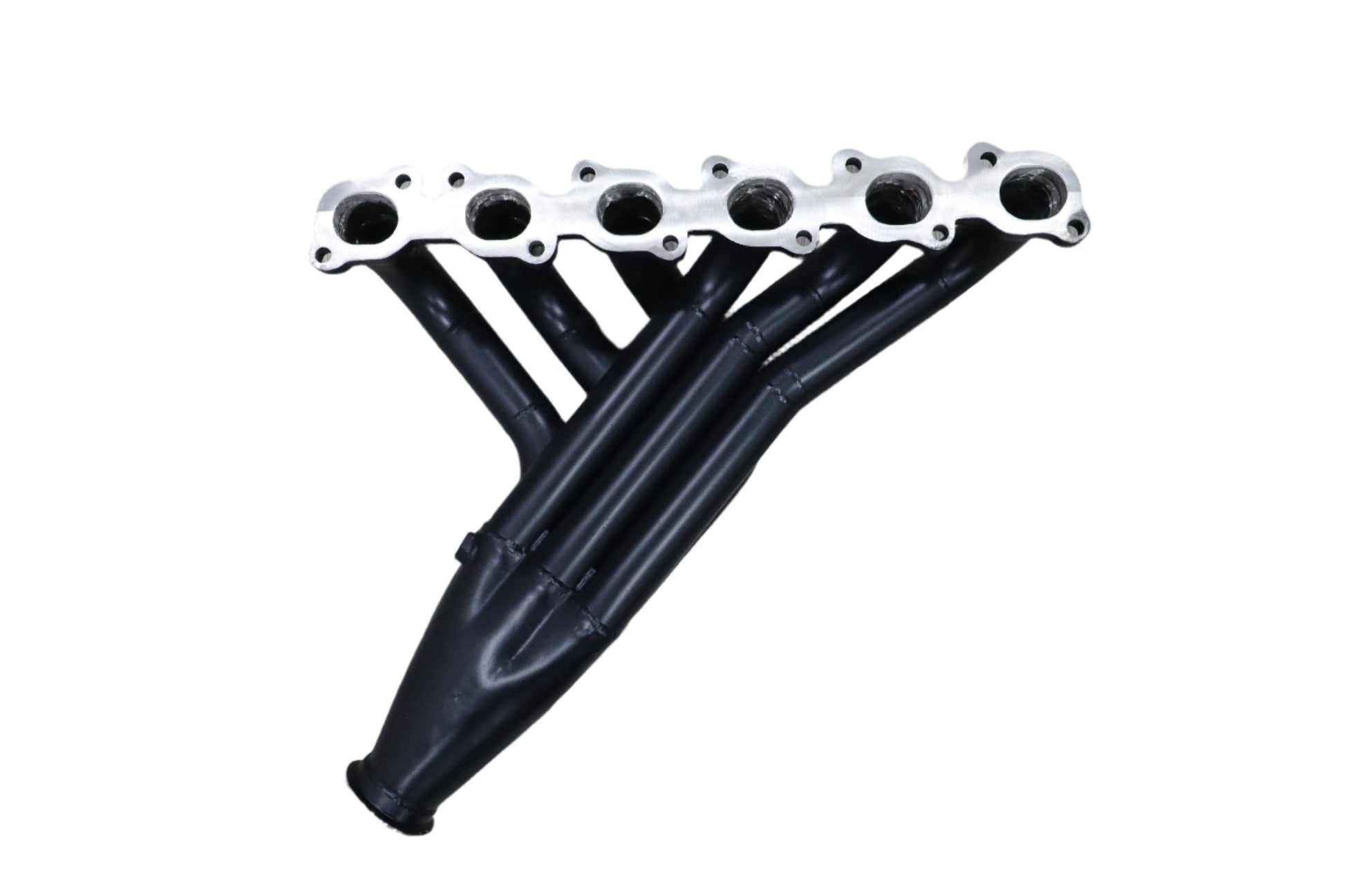 We are pleased to present our in-house manufactured 6-1 headers with a ceramic coating, specifically designed for the Nissan Patrol Super Safari. This particular model features a 3.5-inch diameter. The ceramic coating serves to maintain a lower temperature within the engine bay, enhancing overall performance.